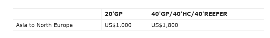 此外,达飞也更新了亚洲港口(包括日本、东南亚和孟加拉国)到北欧港口(包括英国和从葡萄牙到芬兰/爱沙尼亚的所有港口)的FAK费率。